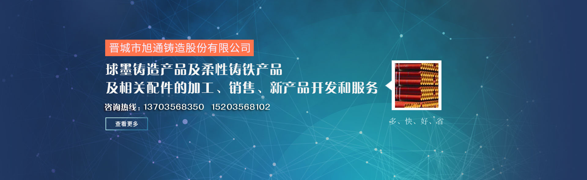 晉城市旭通鑄造股份有限公司是一家致力于球墨鑄造產(chǎn)品及柔性鑄鐵產(chǎn)品及相關(guān)配件的加工、銷售、新產(chǎn)品開發(fā)和服務(wù)的網(wǎng)絡(luò)平臺,以“多、快、好、省”為服務(wù)宗旨,多種選擇、快速定位、優(yōu)質(zhì)產(chǎn)品、省錢省力,為客戶提供精準服務(wù)......